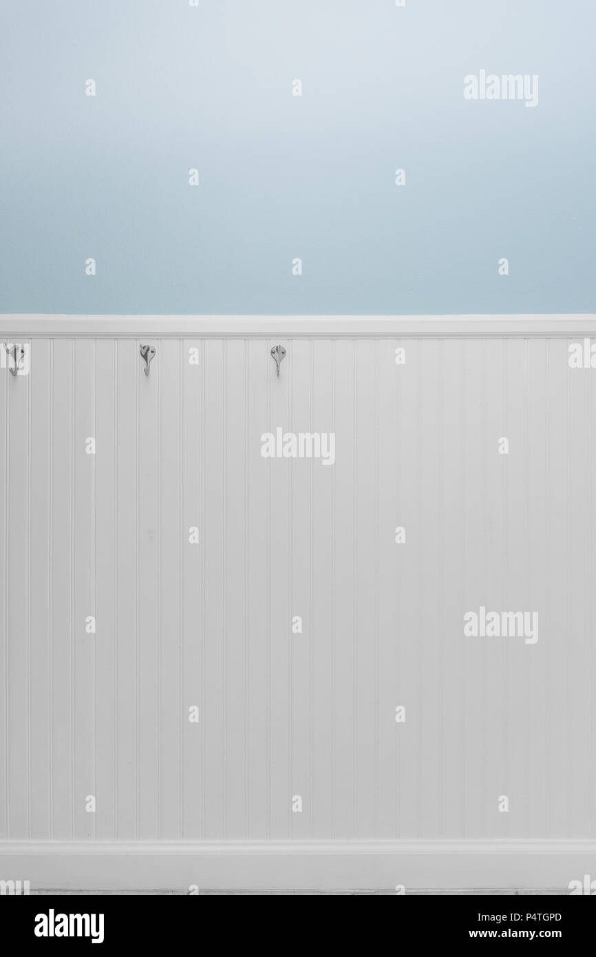 Empty Silver Hooks On White Bead Board Or Wainscoting With