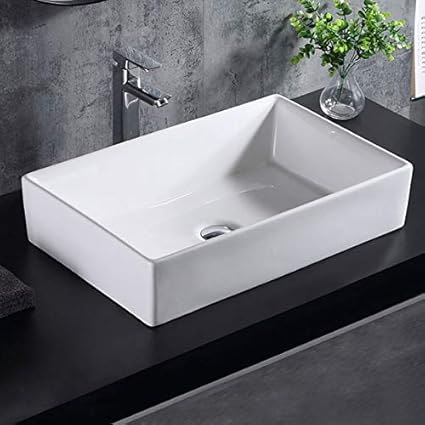 Modern Rectangle Porcelain Above Counter White Ceramic Bathroom Vessel Sink E Cl 1328